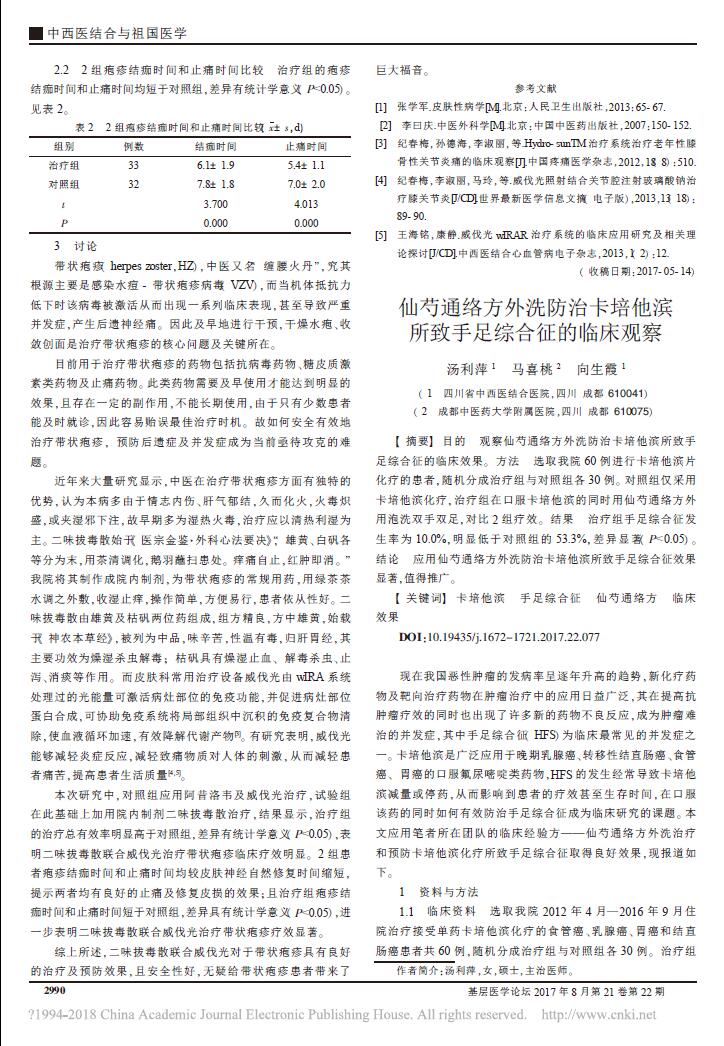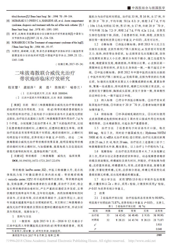 - 二味拔毒散联合威伐光治疗带状疱疹临床疗效研究