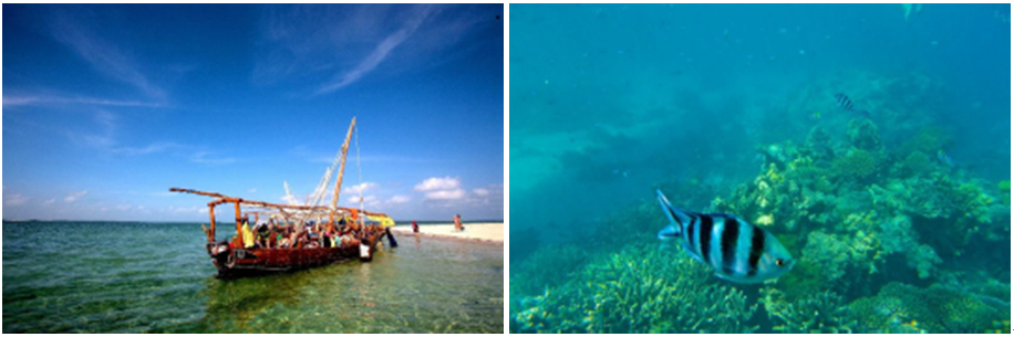 桑给巴尔岛东部海岸是拥有岛上最美的沙滩,而南部浅海的珊瑚礁保存完好,今天我们将乘非洲独有的独桅帆船出海,在碧蓝的印度洋怀抱中追逐海豚、珊瑚礁浮潜。下午回到酒店后自由活动。