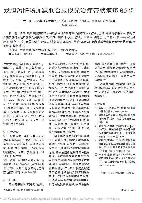 龙胆泻肝汤加减联合威伐光治疗带状疱疹