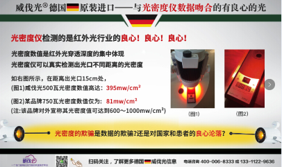 1 这是一位来自无锡的女患者,今年28岁;因宫颈炎,痛经就诊于无锡市惠山区中医院妇科,医生就患者病症给出了威伐光照射的治疗方案。每天照射一次,每次20分钟。2次照射后小腹部疼痛明显减轻。连续一周,宫颈炎引起的下腹坠痛症状消失。 这位女性患者今年33岁,由于慢性盆腔炎急性发作期,导致下腹部疼痛难忍,就诊于惠山区中医院,医生给出了用威伐光做照射的治疗方案,患者用威伐光照射每日2次,每次30分钟,治疗3天后疼痛就消失了。 1 什么是德国威伐光? 威伐光是以卤素光源为发光体,并将其产生的光经过德国专利的WIRA系统过滤后,大幅滤过了其中对皮肤易产生热效应的光,从而只保留了病人能够耐受且极具治疗价值的一种高能量光波,它能够轻松穿透人体皮下的7CM以形成深层治疗,我们将这种光称为威伐光。 威伐光采用750W超高光能,在能量守恒的前提下,利用自身穿透人体时将其各自所携带的能量转化成我们人体不同组织所敏感并能利用的生物能量。深度可达皮下10个公分。 威伐光2011年进入中国市场前,已在欧美、亚洲推广15年。在此期间欧洲美国、以色列、日韩等众多国家纷纷破解或仿制其技术,均未成功! 好的产品,不仅能够经受的起临床时间的验证,也能够经受的起“光密度仪”对其宣传数据的测量!不是所有的光疗产品都敢于曝光“光密度仪”的数据监测结果!!!