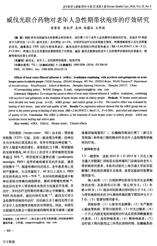 - 威伐光联合药物对老年人急性期带状疱疹的疗效研究