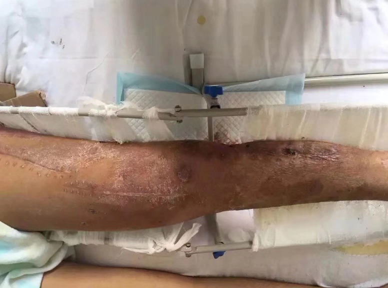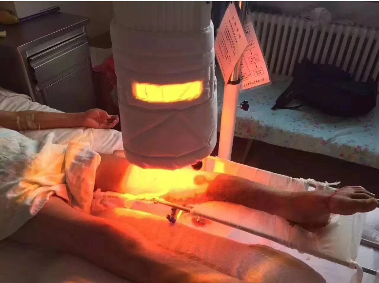 一位东北的先生,因为一场车祸造成腿部多处粉碎性骨折已经在哈尔滨医大医院住院5个多月!症状:因为内固定感染造成复杂性疼痛。专家会诊之后也没有很好的治疗方案。就在威伐光装机当天,患者正准备截肢,后经主任沟通先尝试使用威伐光深部炎症治疗系统照射一个星期,作为最后的治疗方案,如还不行再进行截肢。