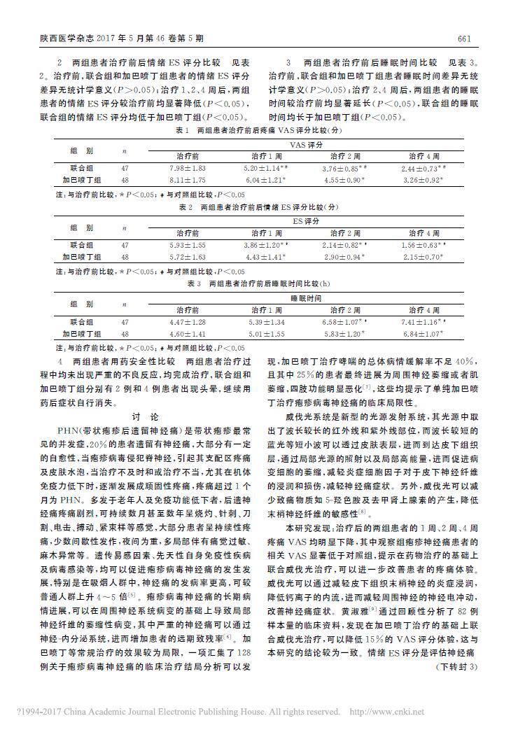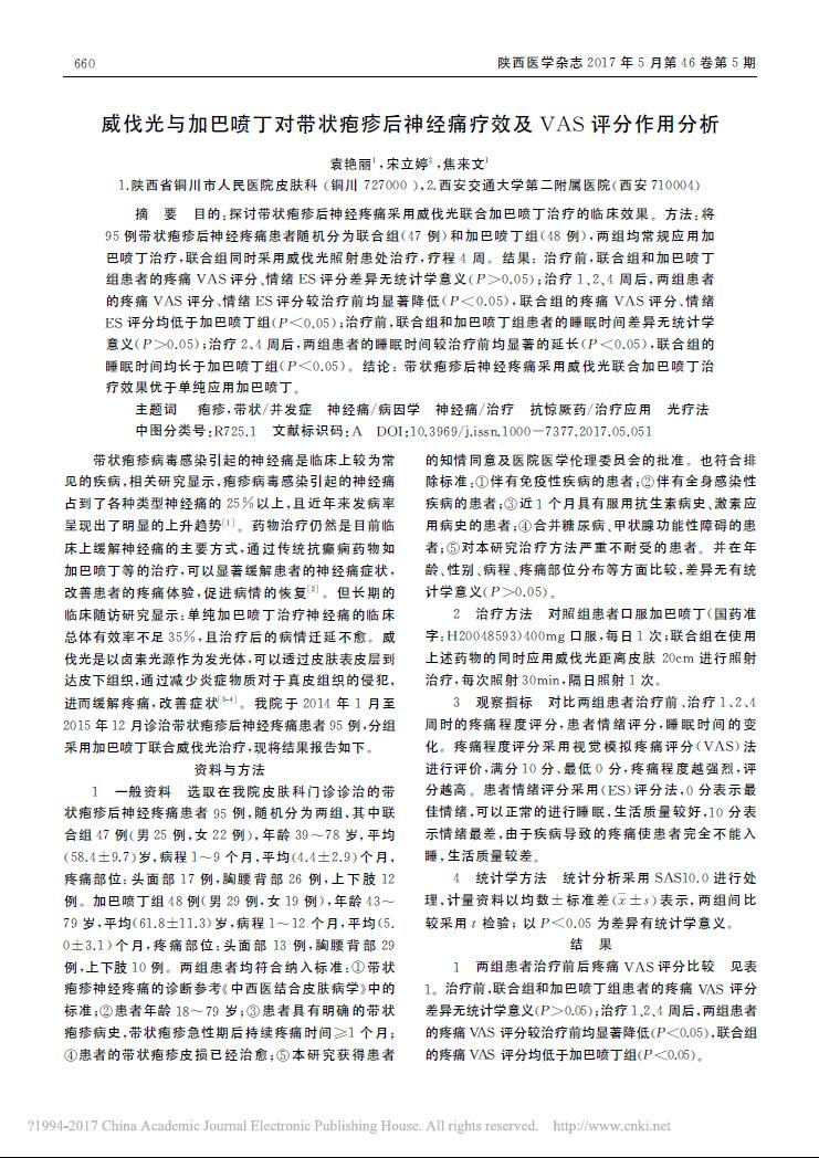 - 威伐光与加巴喷丁对带状疱疹后神经痛疗效及VAS评分作用分析